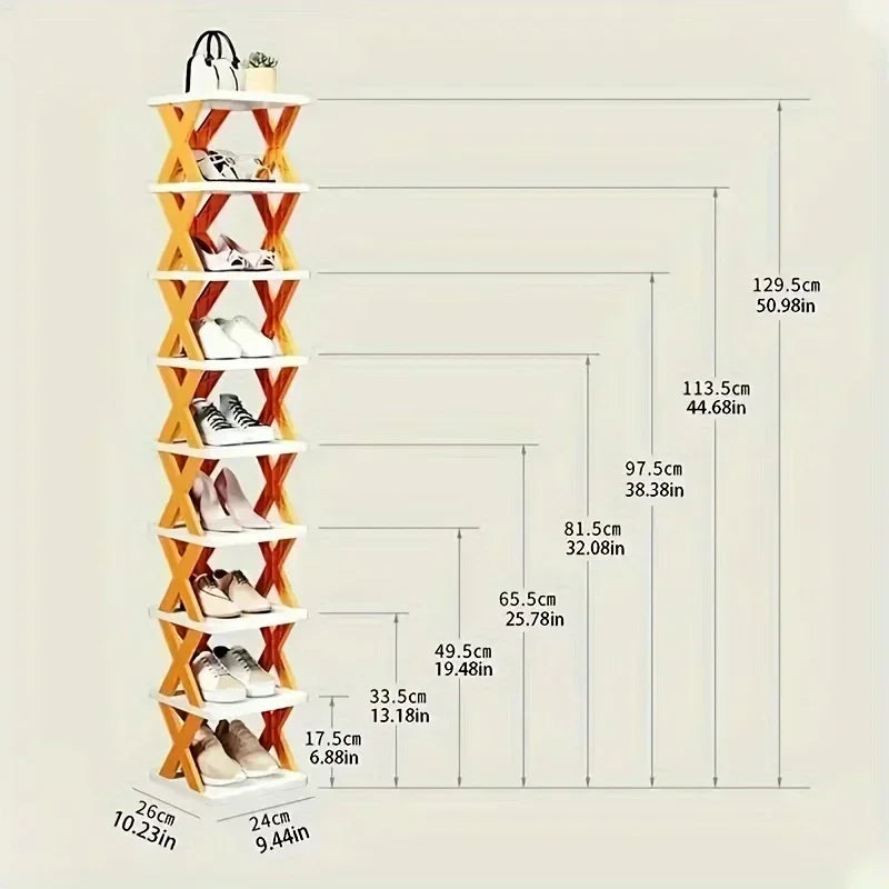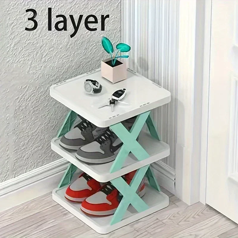 1 multi-layer plastic shoe rack, foldable and removable, suitable for bedrooms, saves space and decorates the room with simplicity and good taste.