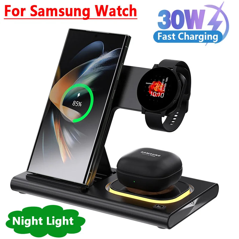 TriCharge Nightlight Station: 3-in-1 Wireless Charger for Devices